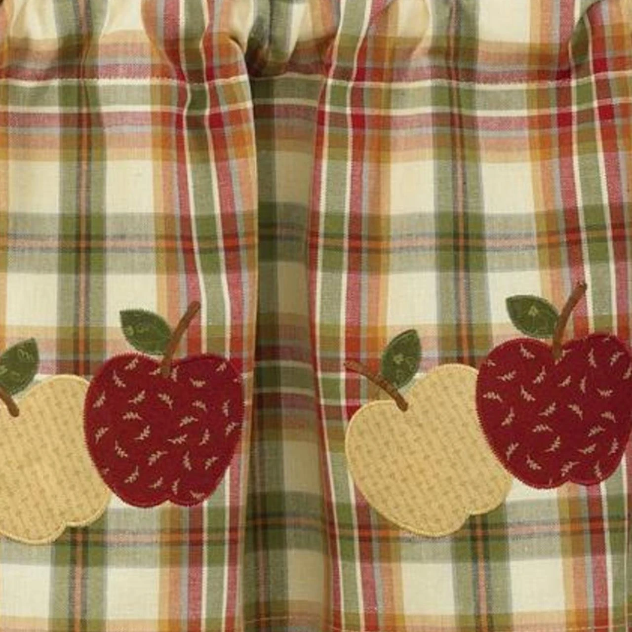 Add some country pizazz to your home decor! What could be sweeter than apples at your window? Well, the Apple Applique Lined Valance coordinates with Park Designs Lemon Pepper tiers, so you could have both sweet and savory for the perfect balance of color and style! The valance is a warm barn red, thyme green, country mustard, and cream plaid and is overlaid with pairs of cream and barn red apples. It is fully lined. (Note: the coordinating Lemon Pepper tiers are not lined.)