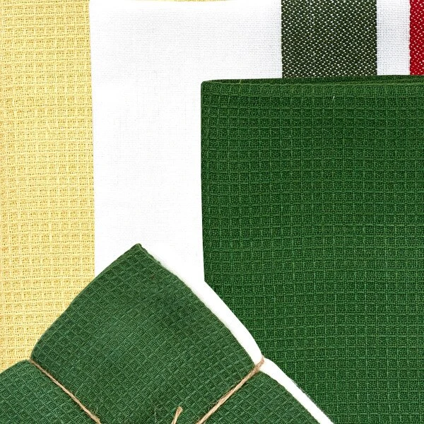Includes three assorted 18″ x 28″ dishtowels and one 13″ dishcloth.