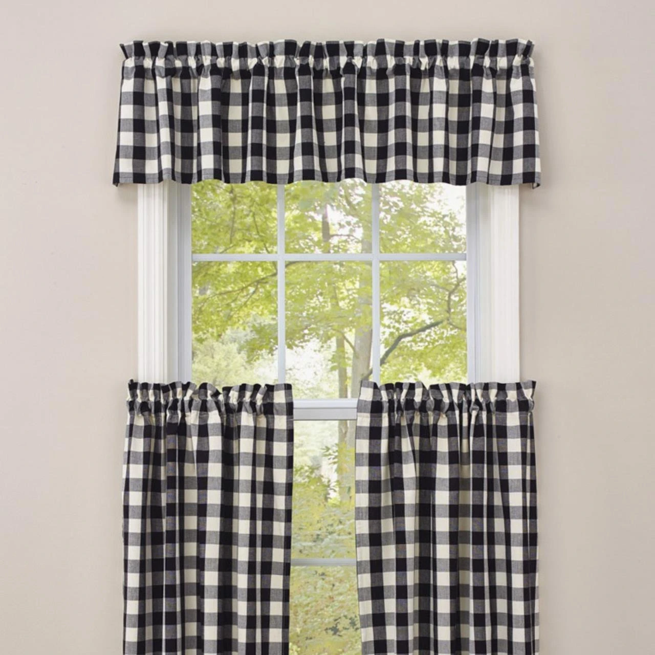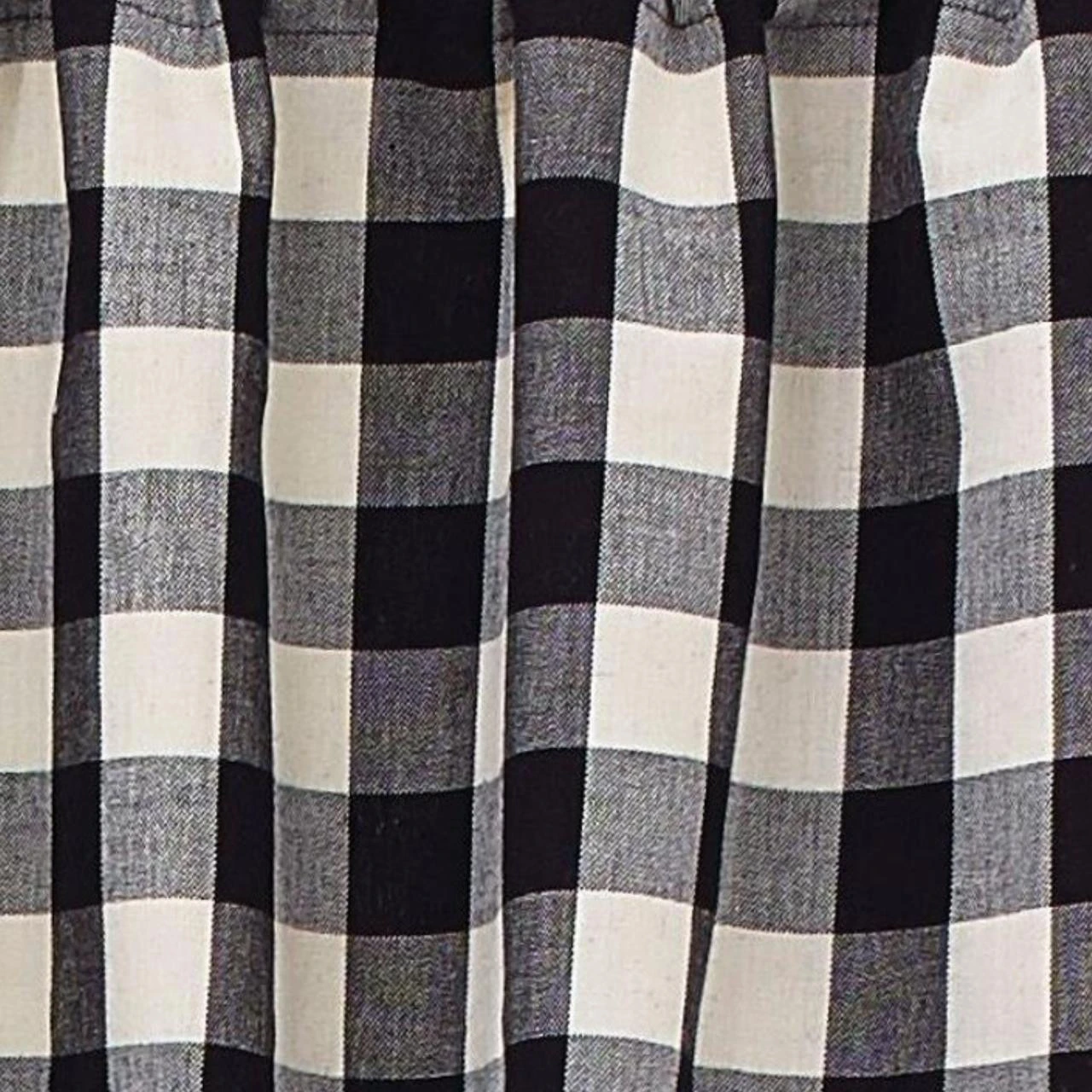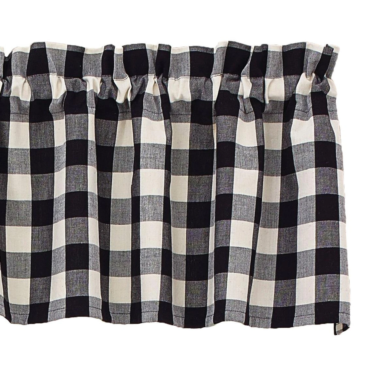 This Checkerboard Star Check Valance features time-honored checkerboard squares of black, white & warm gray that blend together to create a charming chunky plaid! So fresh & lovely on its own, or pair with coordinating tiers for a more dramatic appeal!