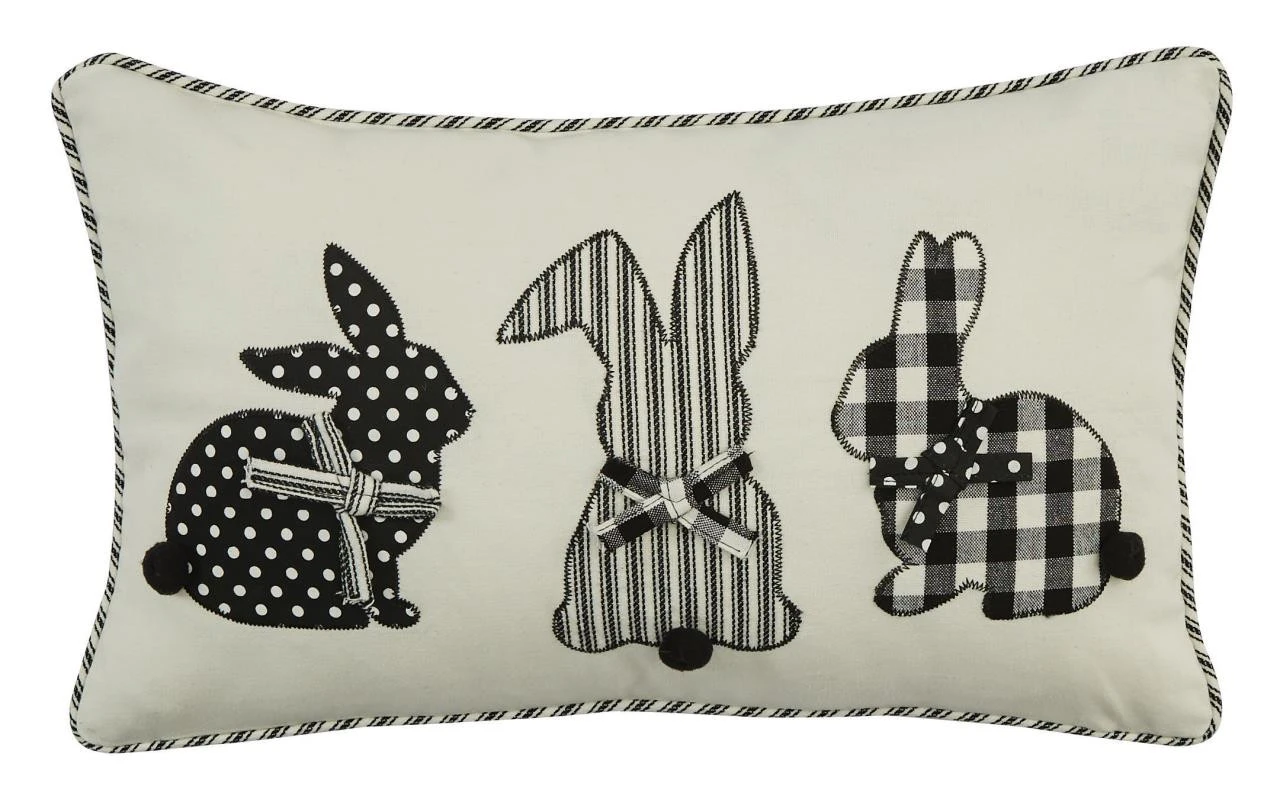 The Cotton Tails Pillow by Park Designs will help usher in the wonderful season of spring with the adorable black and candlelight white bunnies and their fuzzy tails! Spring is definitely in the air!