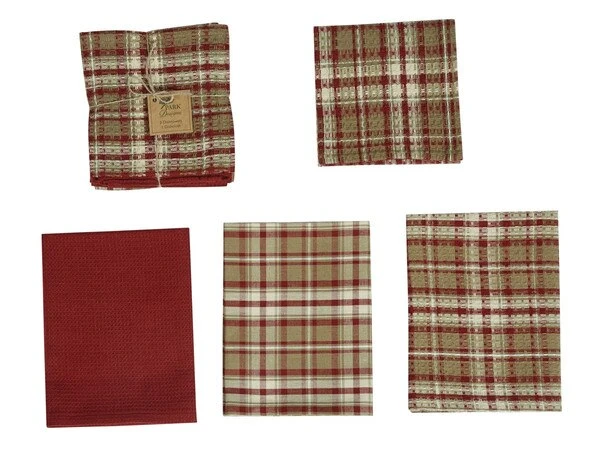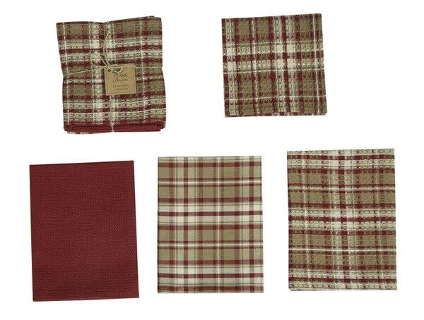 Includes three assorted 18″ x 28″ dishtowels and one 13″ dishcloth.