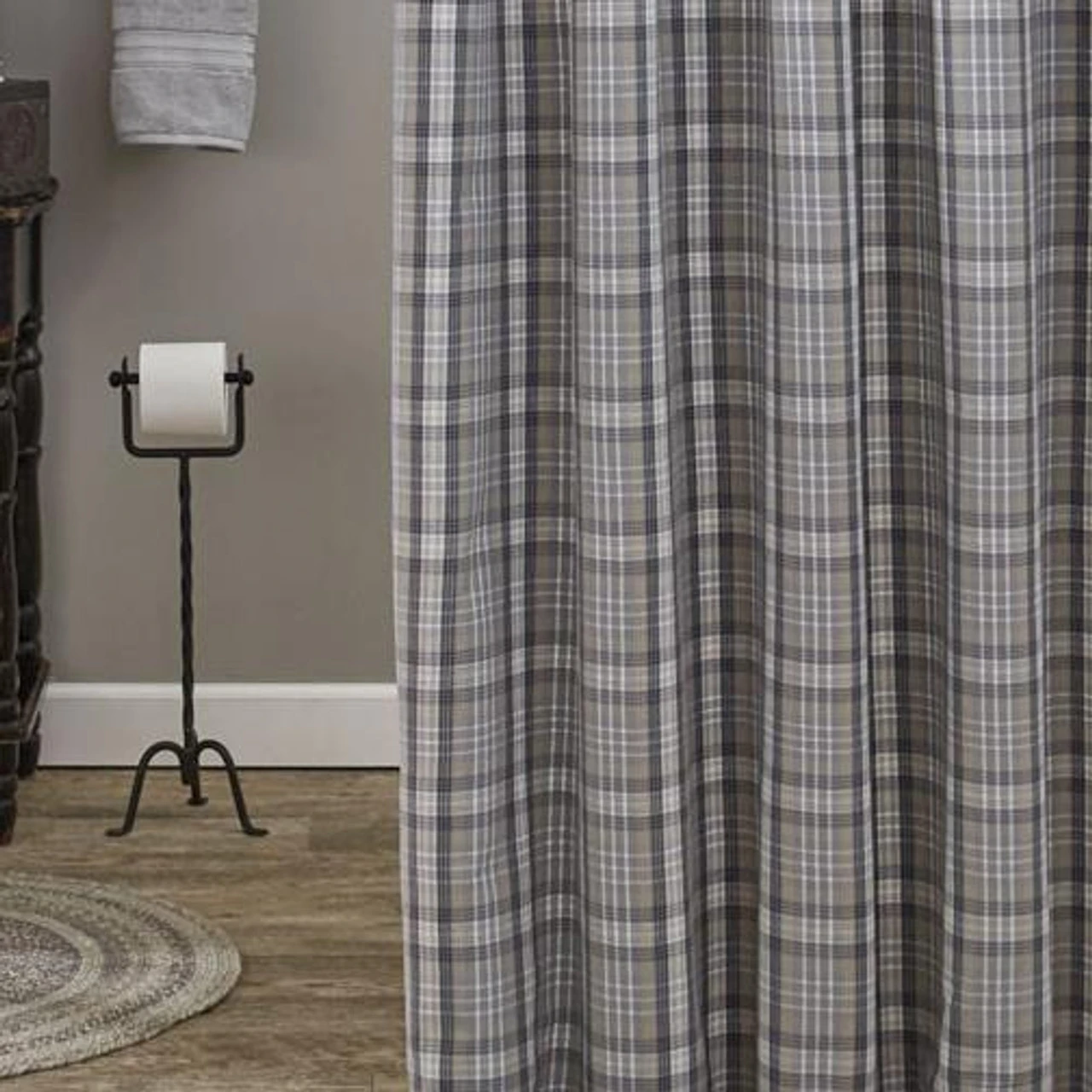 Add the popular country farmhouse colors of gunmetal, dove gray, tan and candlelight white to your bath with the Hartwick Shower Curtain by Park Designs. Pleasing plaid design with appealing style!