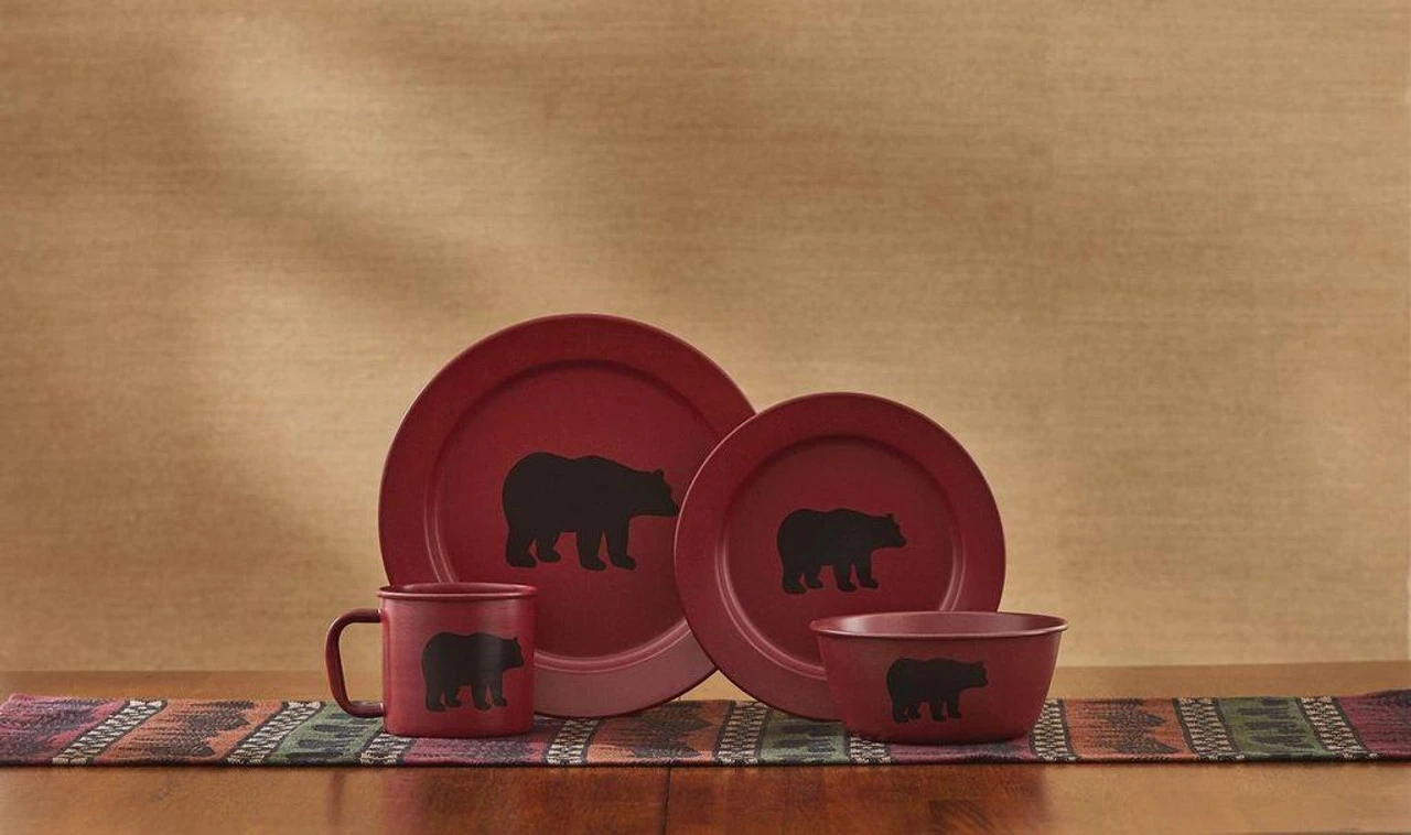 Eat your meals in wildlife style with the Linville Enamel Bear Dinner Plates by Park Designs Coordinate with the complementary salad plates, bowls, and mugs for a complete look!
