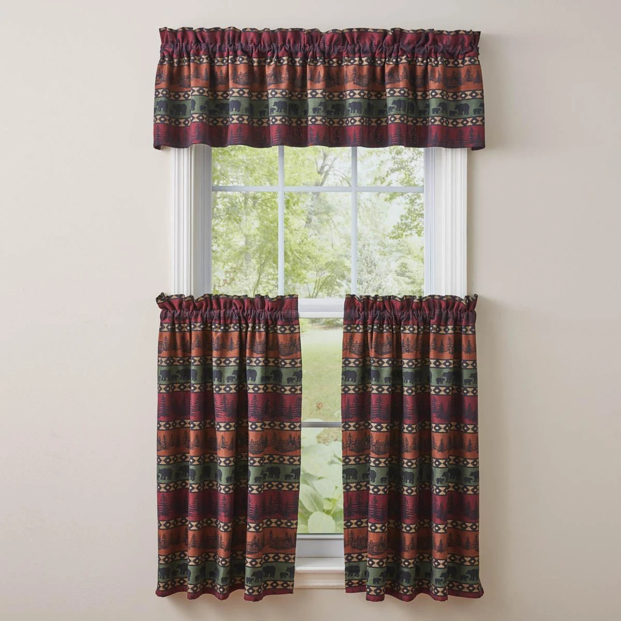 Give your table a colorful wildlife touch with the beautiful Mountain Bear Tiers by Park Designs! Coordinate with the complementary Mountain Bear kitchen linens and curtains for a complete look!
