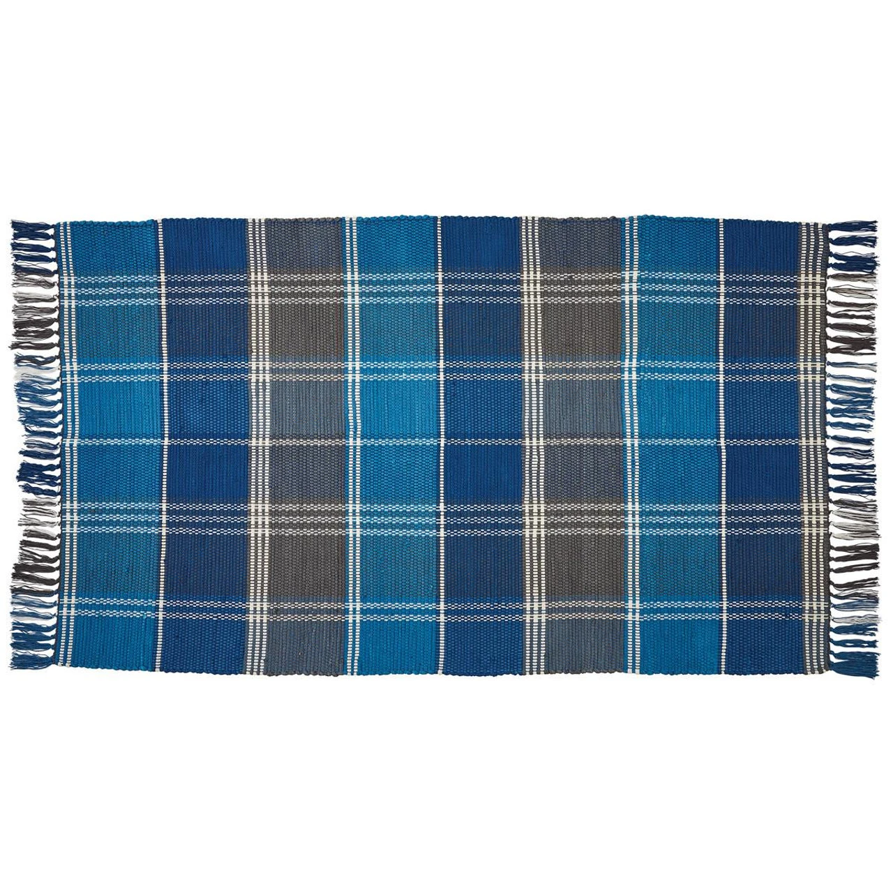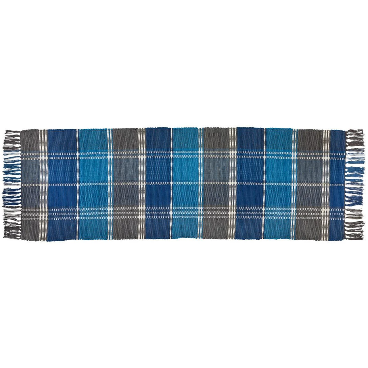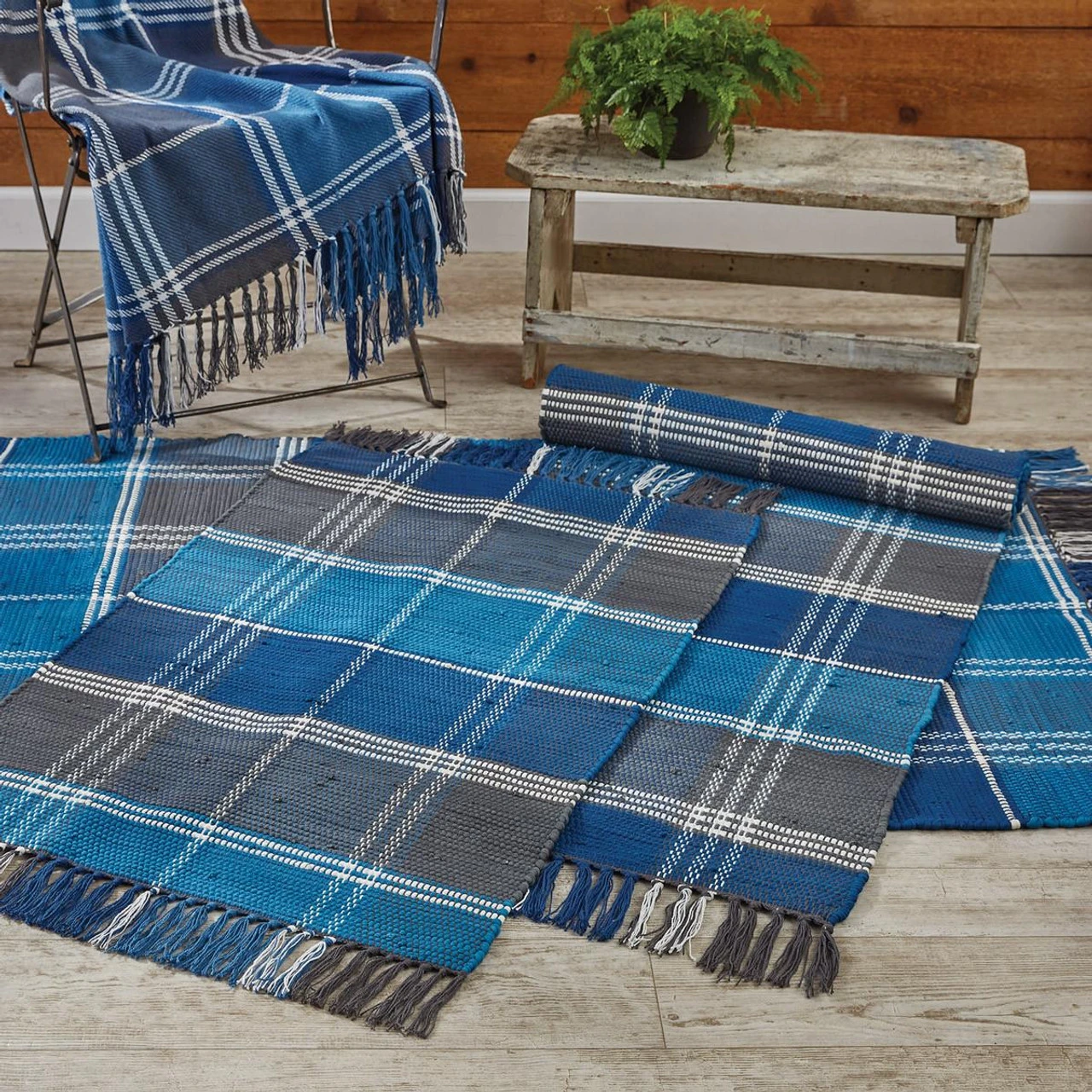 Keep your floors protected and your feet warm with the lovely Rainy Lake Rag Rugs by Park Designs! The pretty weave features a blue, brown, and candlelight white plaid that creates a calm, relaxing look for your country home decor! Tassels accent each short end, providing the perfect finishing touch!