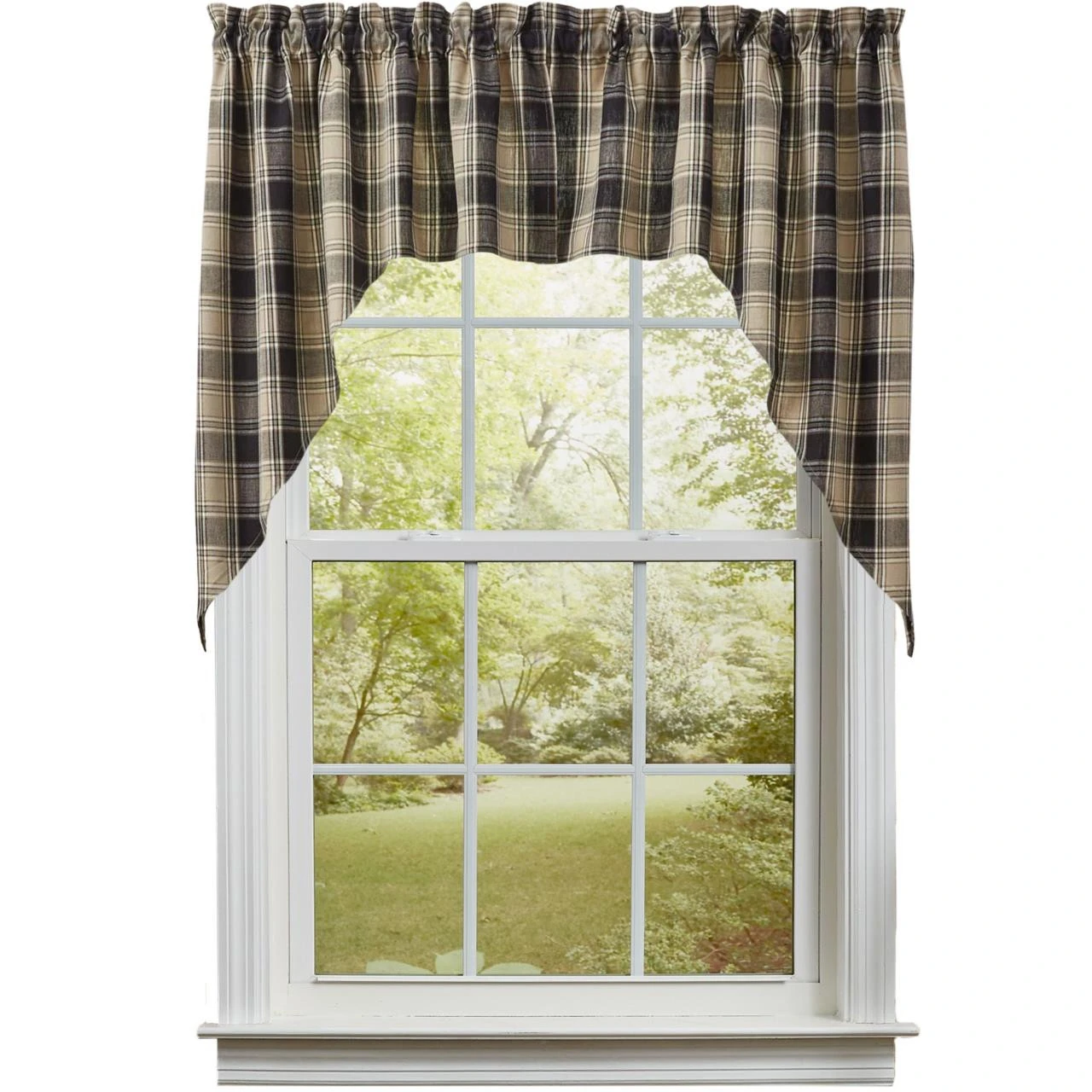 The deep black and sand brown large plaid fabric of the Soapstone Swags by Park Designs will give your windows that country farmhouse appeal! Check out the matching placemats, napkins, table topper, dishcloths, rugs, hand towels, shower curtain and window treatments (sold separately).
