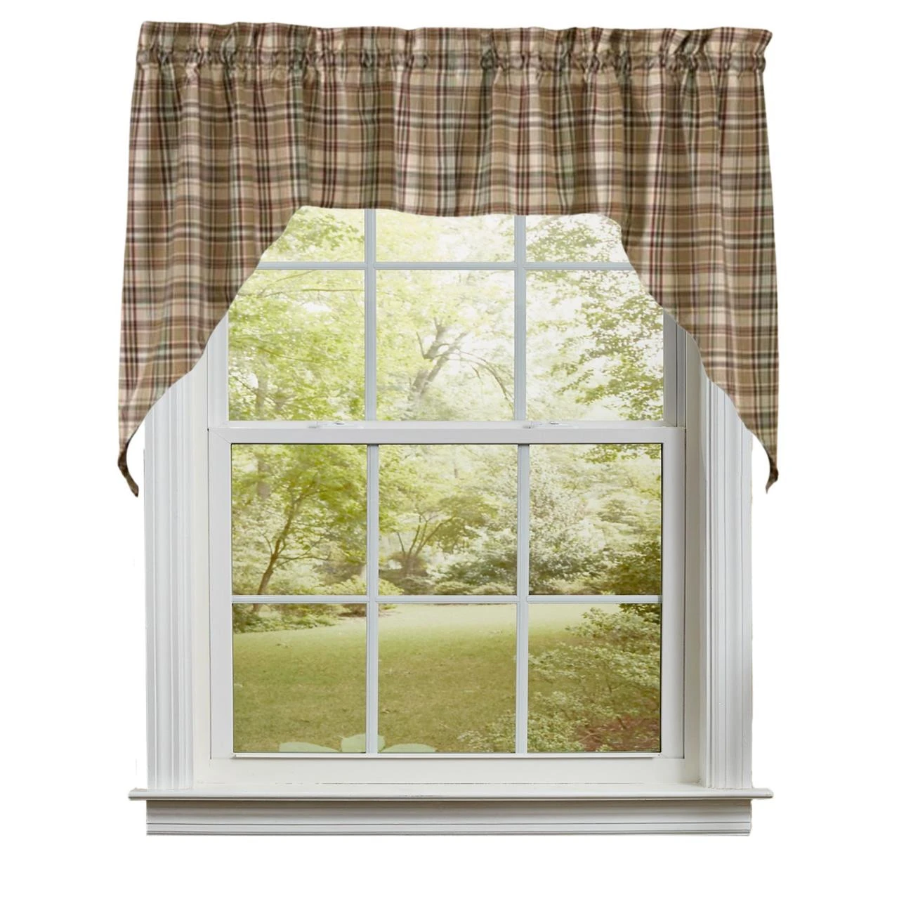 “Thyme” for a change in your country decor? Spice up your windows with these lovely Thyme Swags! The pretty plaid oozes ambiance with its soft, warm tones of green, tan & red! Comes unlined so soft, filtered light can permeate the beautiful pattern! So country charming on its own, or pair with coordinating tiers for a more striking appeal!