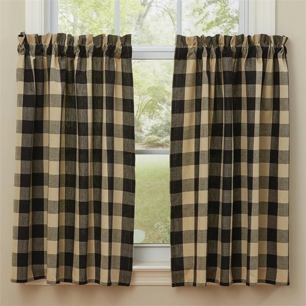 These lovely Wicklow Black Tiers provide the perfect window treatment for any home! Sporting a black & tan traditional check pattern, the unassuming classic design is both pretty and practical! They come unlined to allow soft light to filter through! Perfect on their own, or pair with a coordinating valance for a more striking appeal!